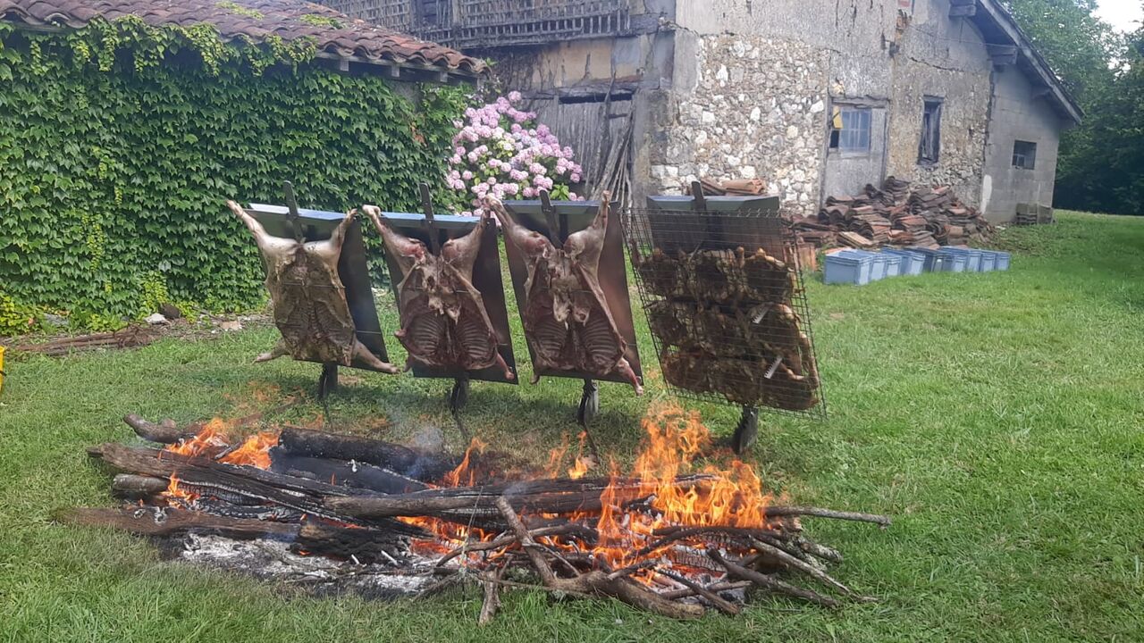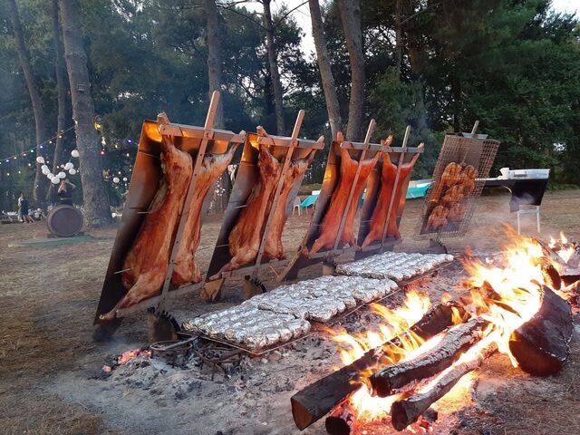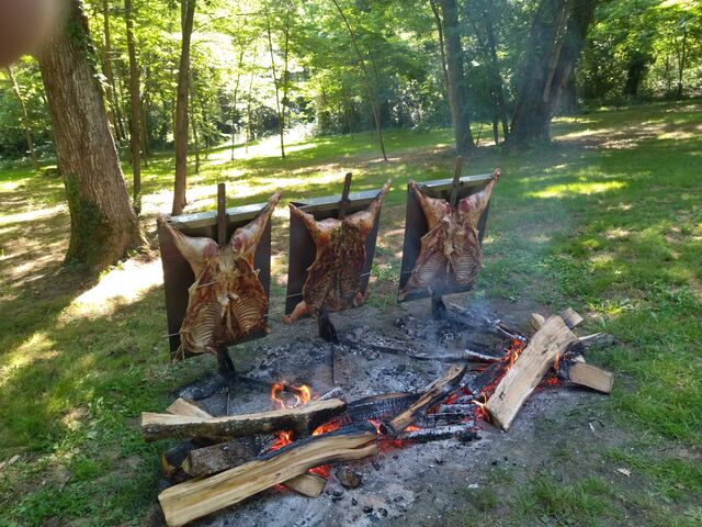 Nous proposons des asado d'agneau, de bœuf, de cochon de lait et de poulet.